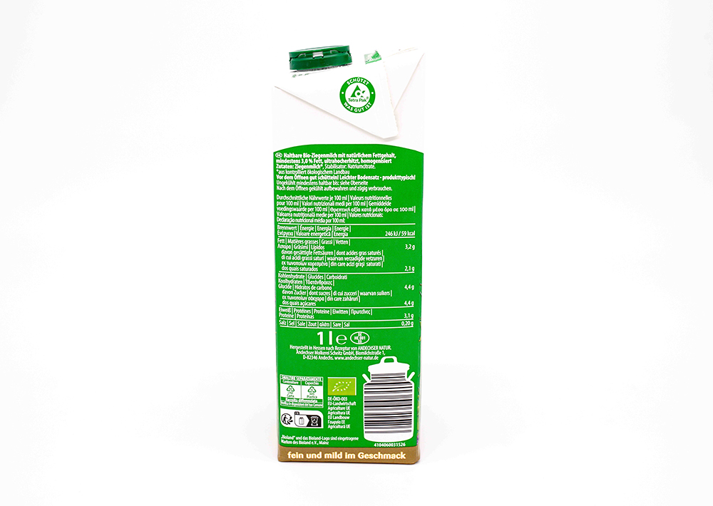 Bio H-Ziegenmilch mit natürlichem Fettgehalt (3,0% Fett),homogenisiert,ultrahocherhitztAllergenhinweise