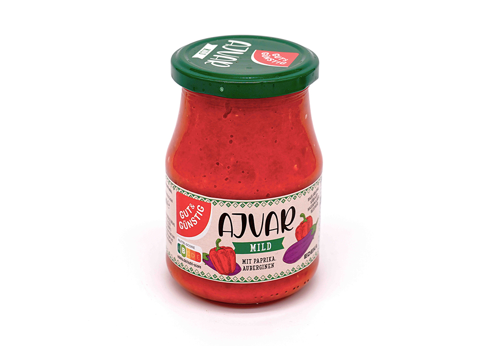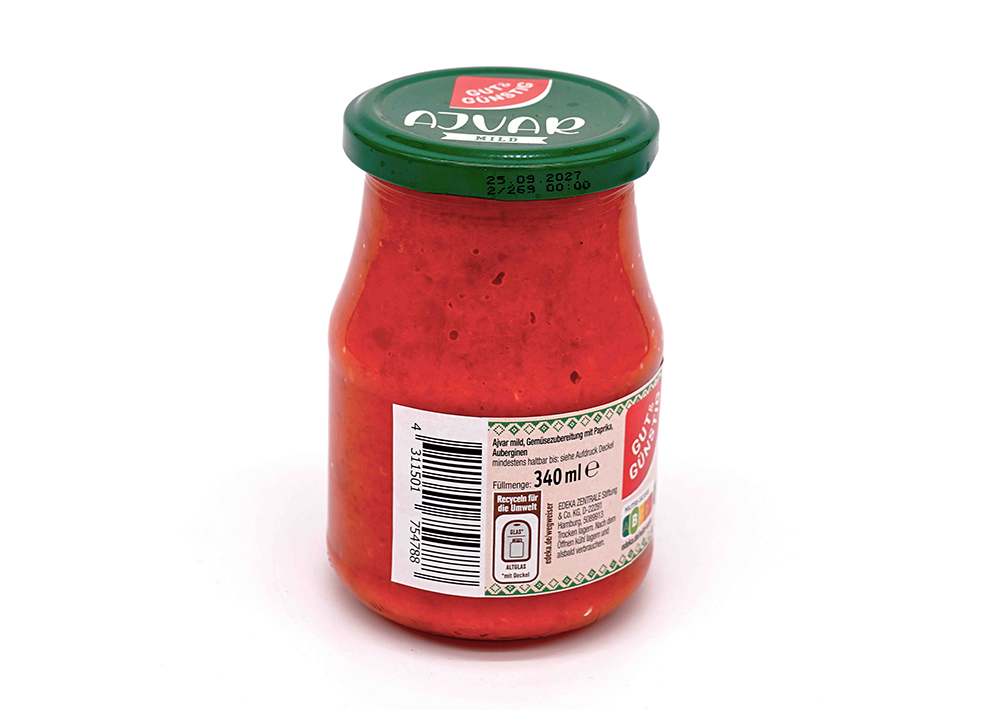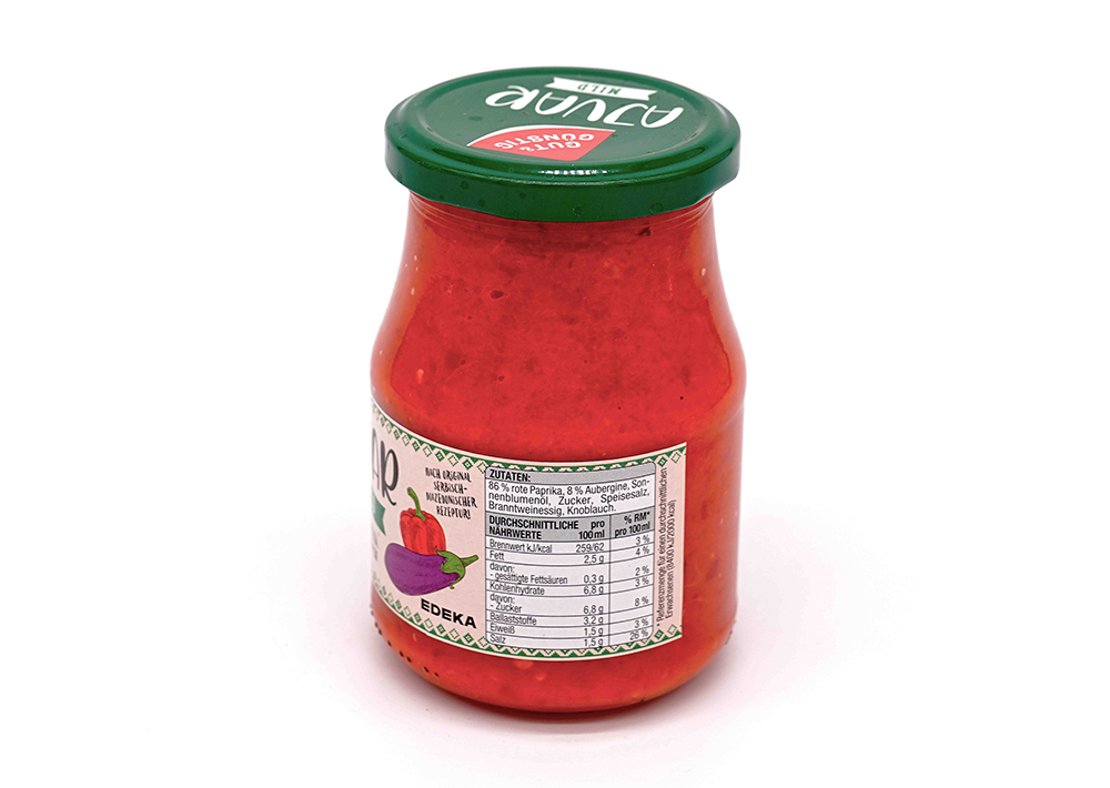 Paprika (60%),Auberginen (10%),Sonnenblumenöl,Zucker,Branntweinessig,Speisesalz,modifizierte Stärke,KnoblauchAufbewahrungshinweis