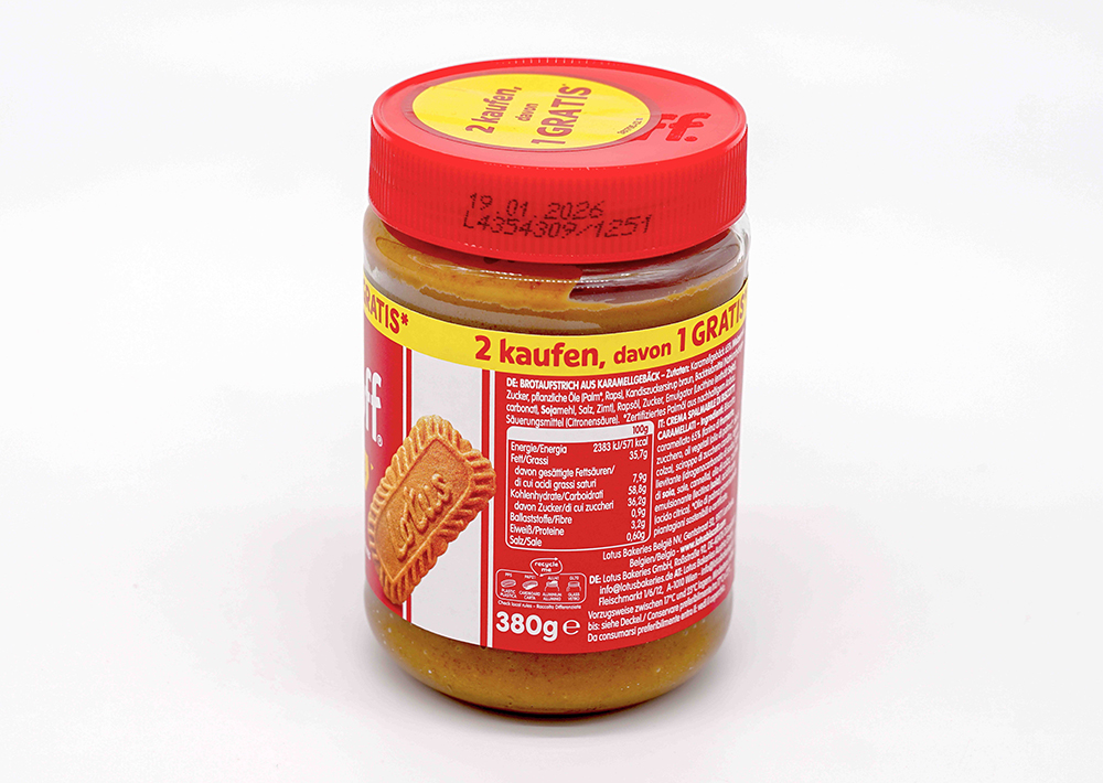 Karamellisierte Kekse (66%),Weizenmehl,Zucker,Pflanzenöle ((Palm, Raps)),Zuckerrohrsirup,Natriumhydrogencarbonat,Sojamehl,Salz,ZimtAllergenhinweise